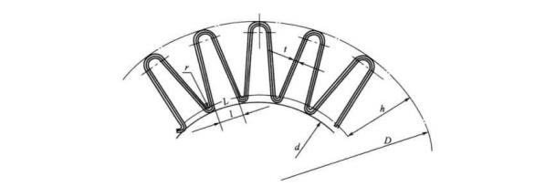 無論油濾芯或空氣濾芯,凡過濾材料選用紙張式且需要打褶的濾芯,它們的設(shè)計(jì)和制造方法都大同小異。本節(jié)提供的設(shè)計(jì)及計(jì)算方法來源于HB 6779—93,只針對(duì)液壓濾芯.